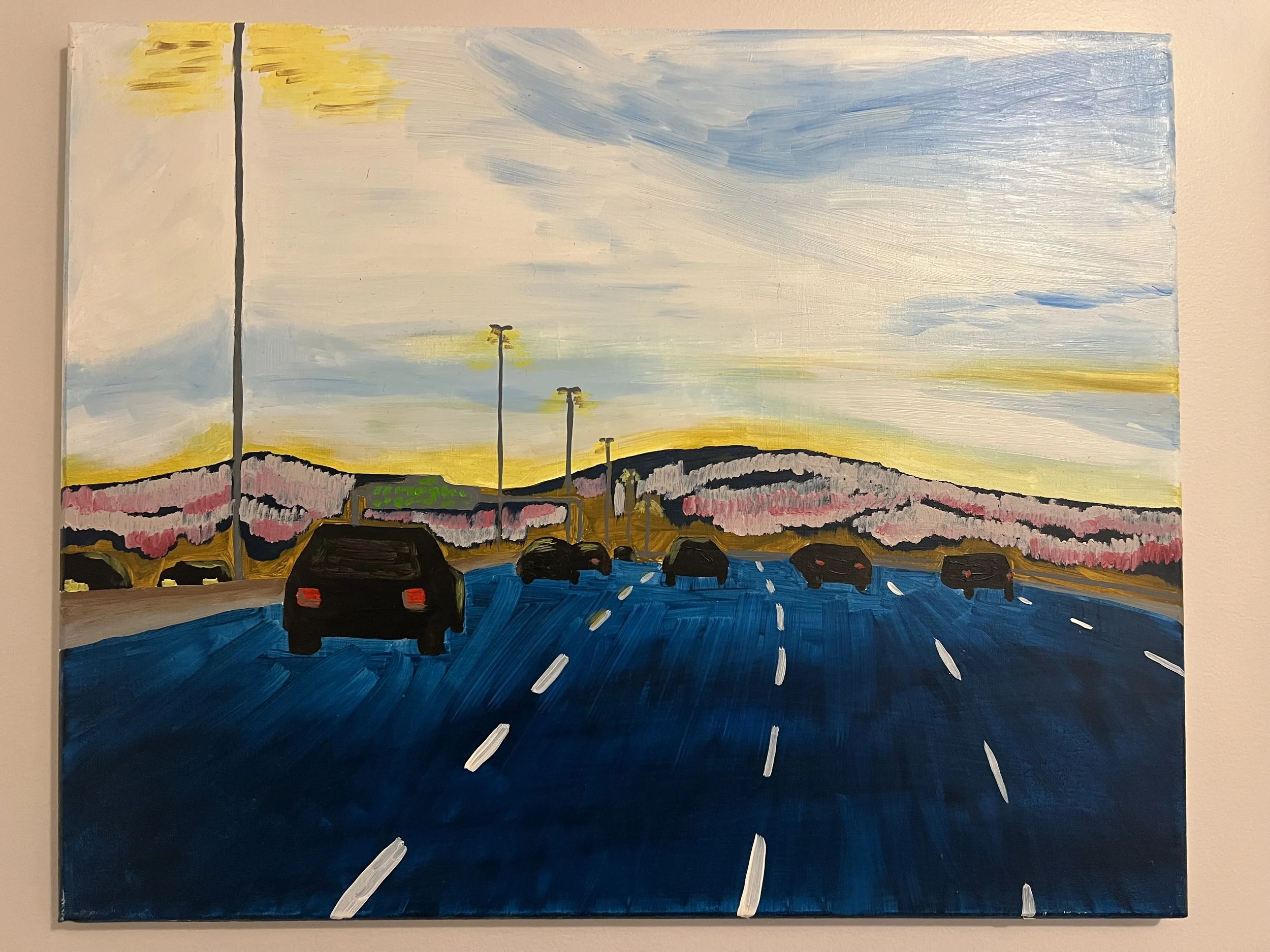 Categories: All diptych handprinted handstamped oil painting painting tablecloth watercolor All / Martini and wine, 2025 $125.00 In every season, I will find something to look forward to, 2023 $100.00 Highway Sunset, 2023 $100.00 Highway with a Truck, 2023 $100.00 Driving in Miami with Gloria, 2022, watercolor $150.00 West Village Sunset - oil painting 11"x14" $50.00 Connecticut on the Merritt Parkway, 2024, watercolor painting $200.00 Untitled (airport), 11" x 14", oil on canvas - 2022 $75.00 Untitled wine study (wxyz), 11" x 14" oil on canvas 2025 $100.00 In Memoriam $250.00 National Zoo, Washington DC $100.00 Chris Murphy on the senate floor. June 15, 2016 $200.00 The cemetery at Barnstable SOLD $0.00 Dandelions and chives under a doom-filled sky $100.00 The Revolution Will Be Televised $50.00 Coming Up For Air, 2020 $150.00 Some waves, 16" x 20" oil on canvas 2023 $100.00